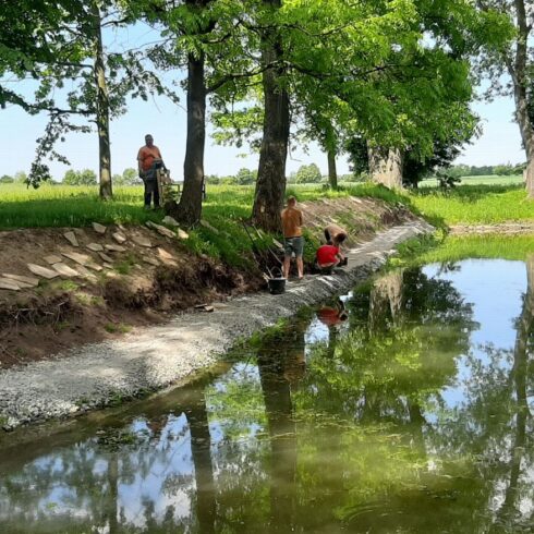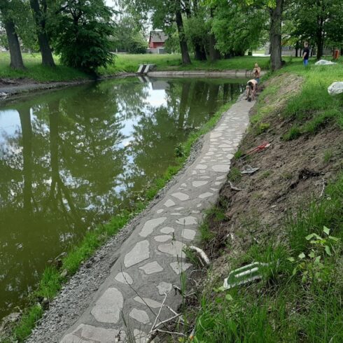 Ochoz rybníka se konečně dokončuje